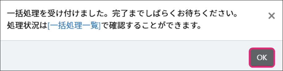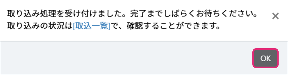 4. 取り込み処理受付のダイアログが表示されます。[OK]をクリックします。