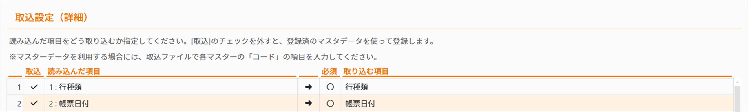 ※2 仕入帳票を取り込む場合は必須