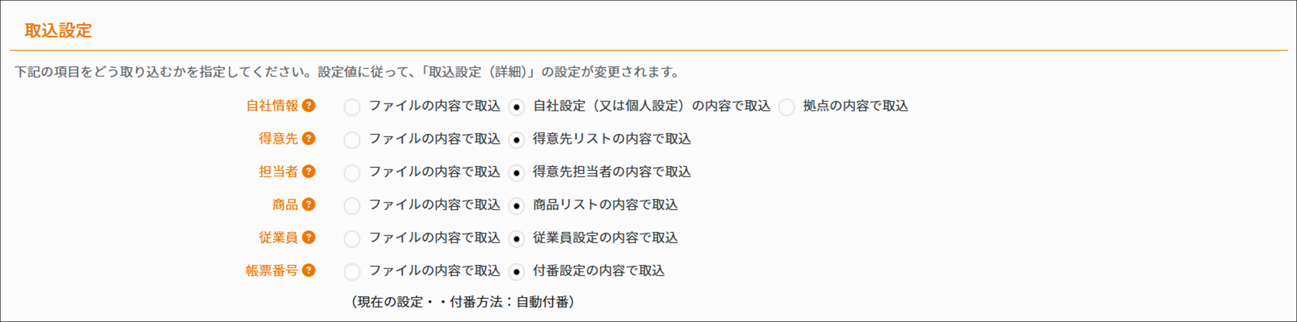 | 得意先(※1) | 得意先を追加する、得意先情報をインポートする |