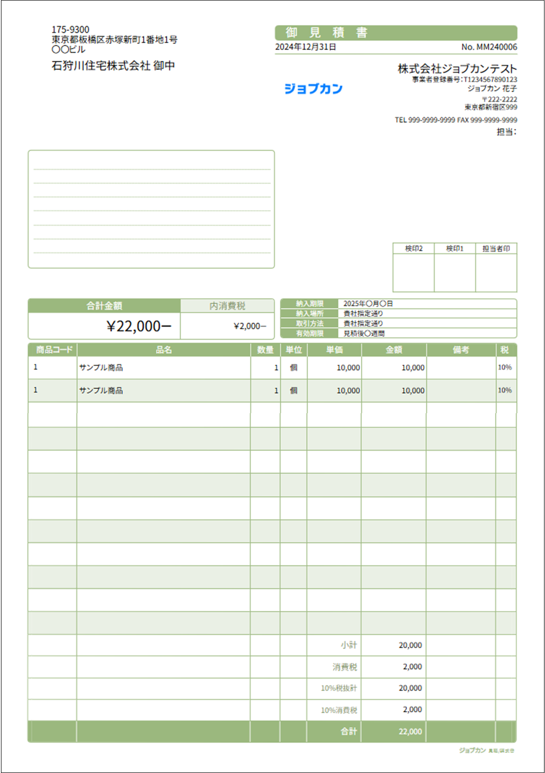 ↓ 作成された見積書例 |