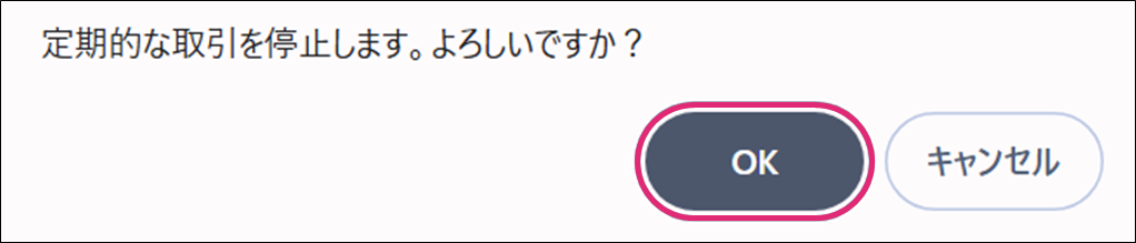 5. 「定期的な取引を停止しました」と表示されます。