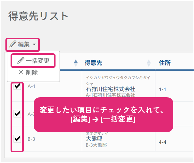 ※下記案内にない内容を変更される場合は、お手数ですが1件ずつ編集画面からお願いいたします。