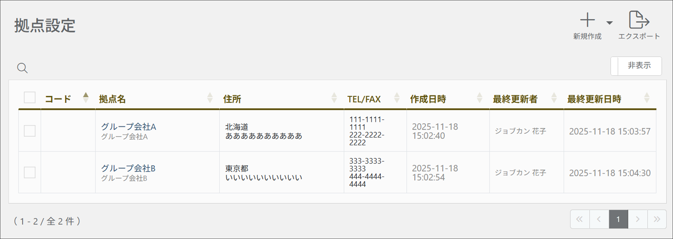 拠点機能では、自社設定とは異なる会社情報を登録することが可能です。