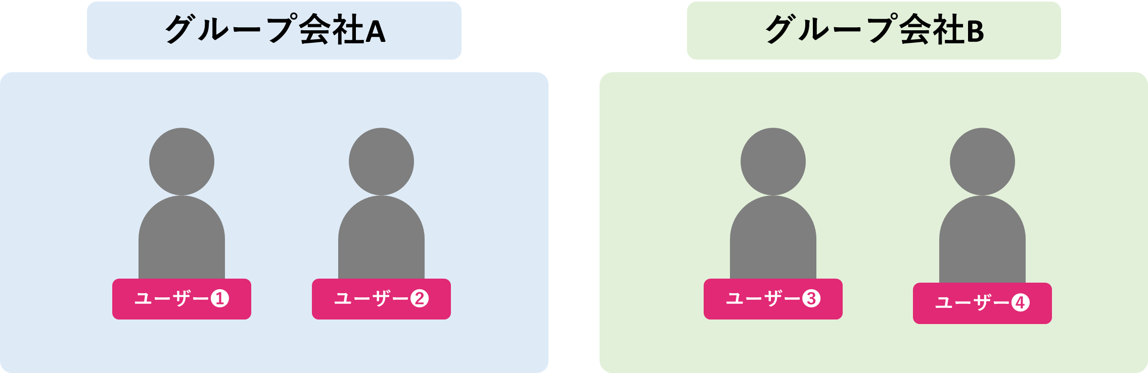 例えば、「グループ会社A」「グループ会社B」の管理をひとつのアカウント内で行う場合