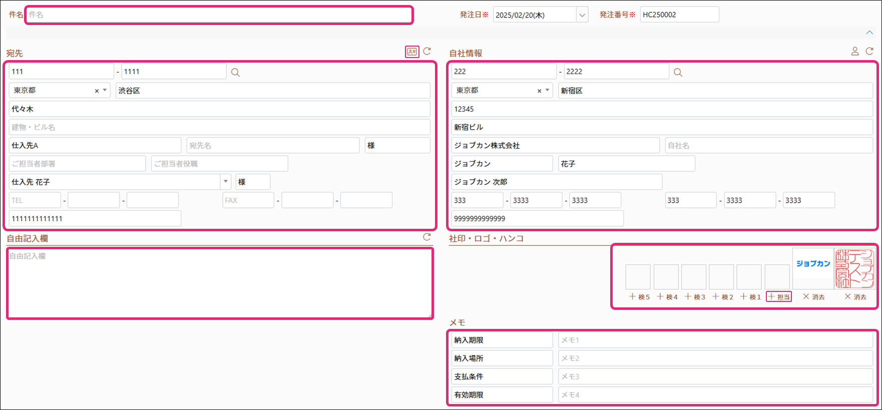 ※[納期]は内部管理用の項目です。印刷時には使用されません。