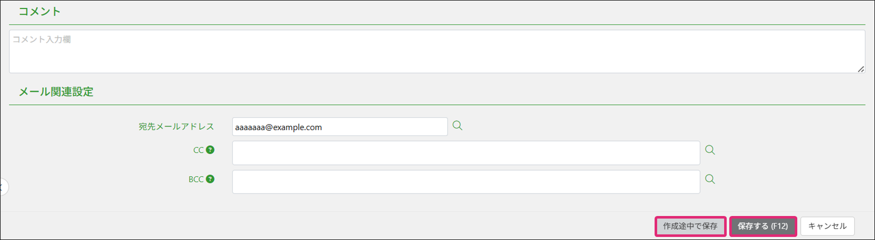 ※コメントは、同一アカウント内のユーザー間でのやりとりを目的としています。仕入先に送付するデータや印刷結果には表示されません。入力した内容は、コメント入力者によって編集・削除できます。