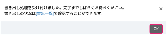 8. 書き出し処理受付ダイアログが表示されます。[OK]をクリックします。
