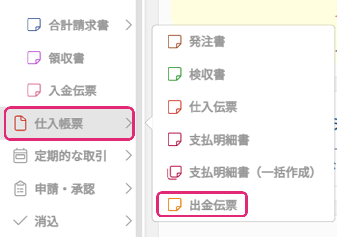 出金伝票の情報をCSVファイルに書き出します。