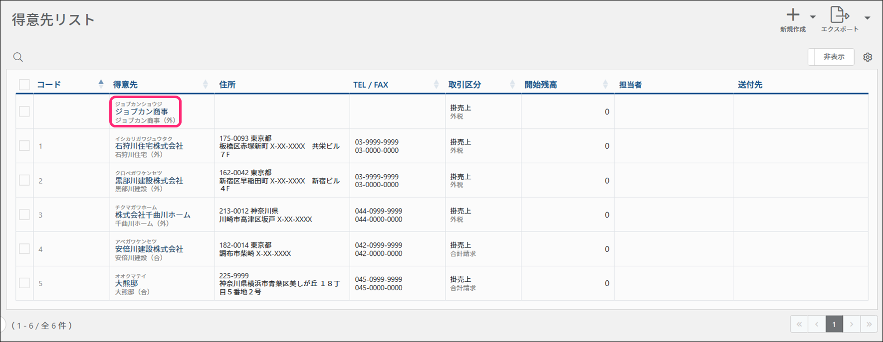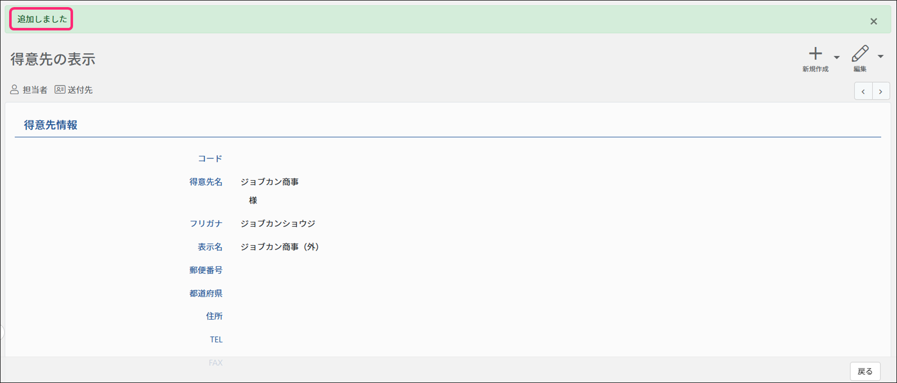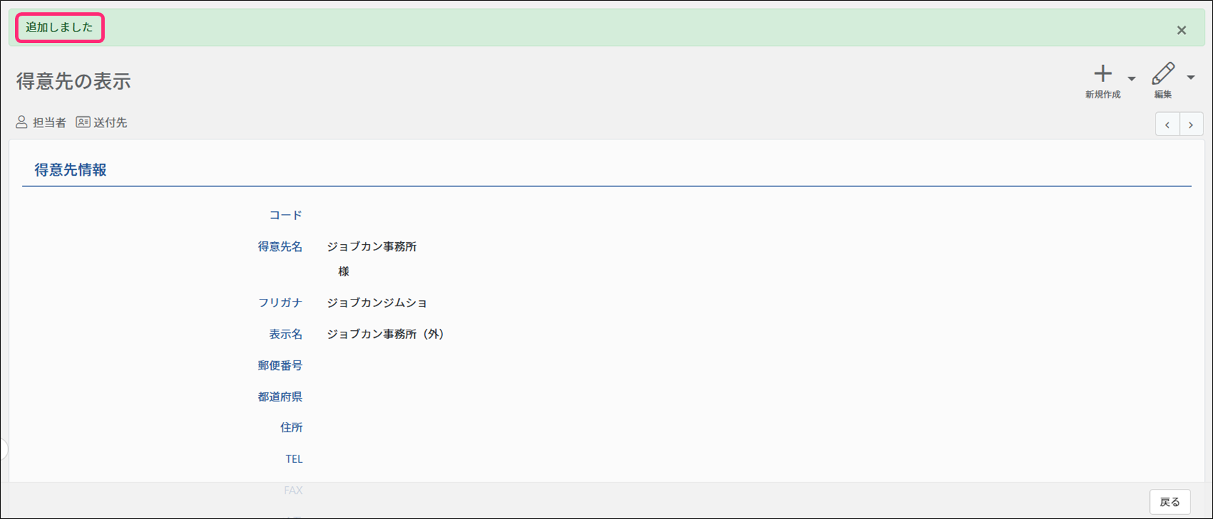 得意先リスト、得意先情報、追加、得意先追加、得意先、顧客、マスター