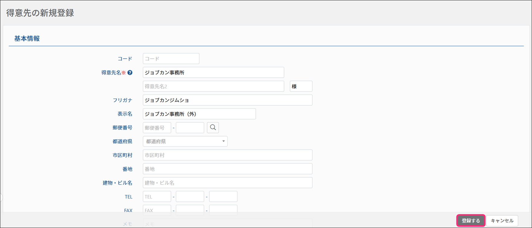 4. 必要に応じて得意先情報を変更したら[登録する]をクリックします。