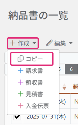 3. [+作成]→[コピー]をクリックします。