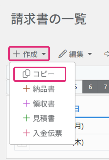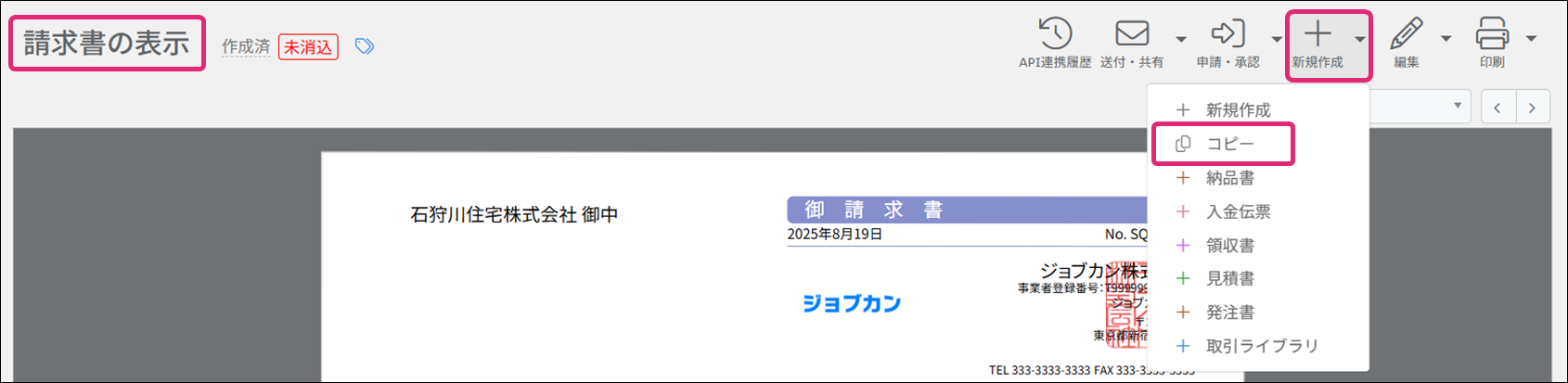 作成済みの請求書をコピーして、新しい請求書を作成します。