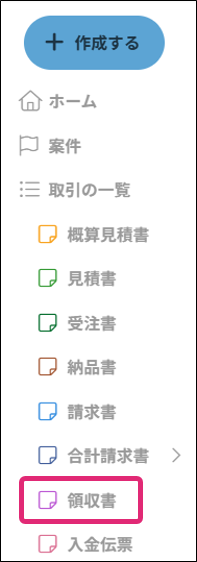※メニュー左上の[+作成する]マークをクリックしても、領収書の新規作成画面を表示できます。