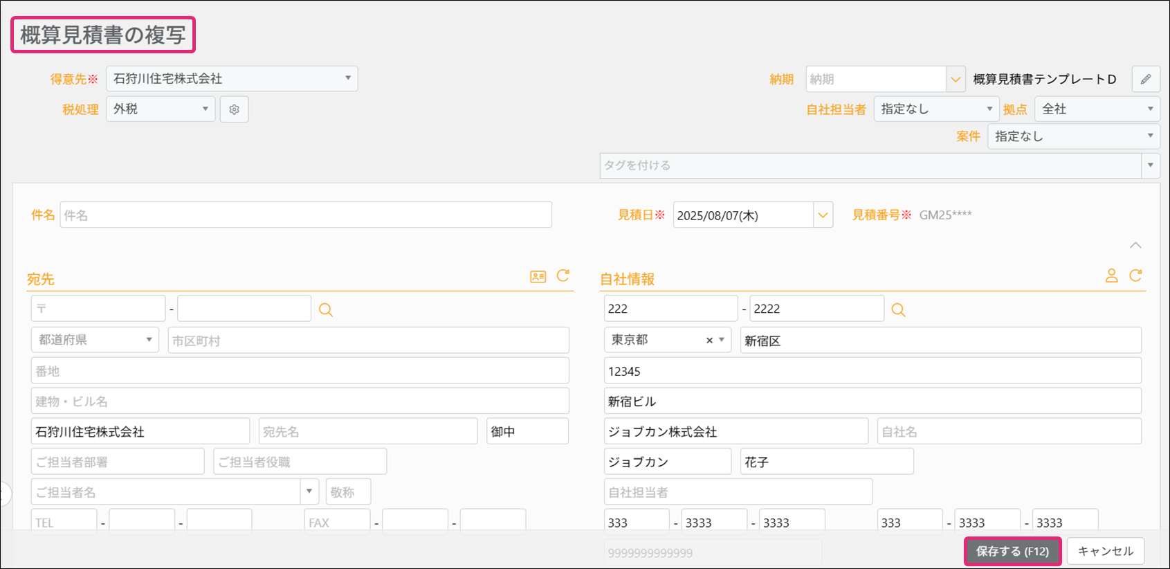 概算見積書、コピー、流用、概算見積