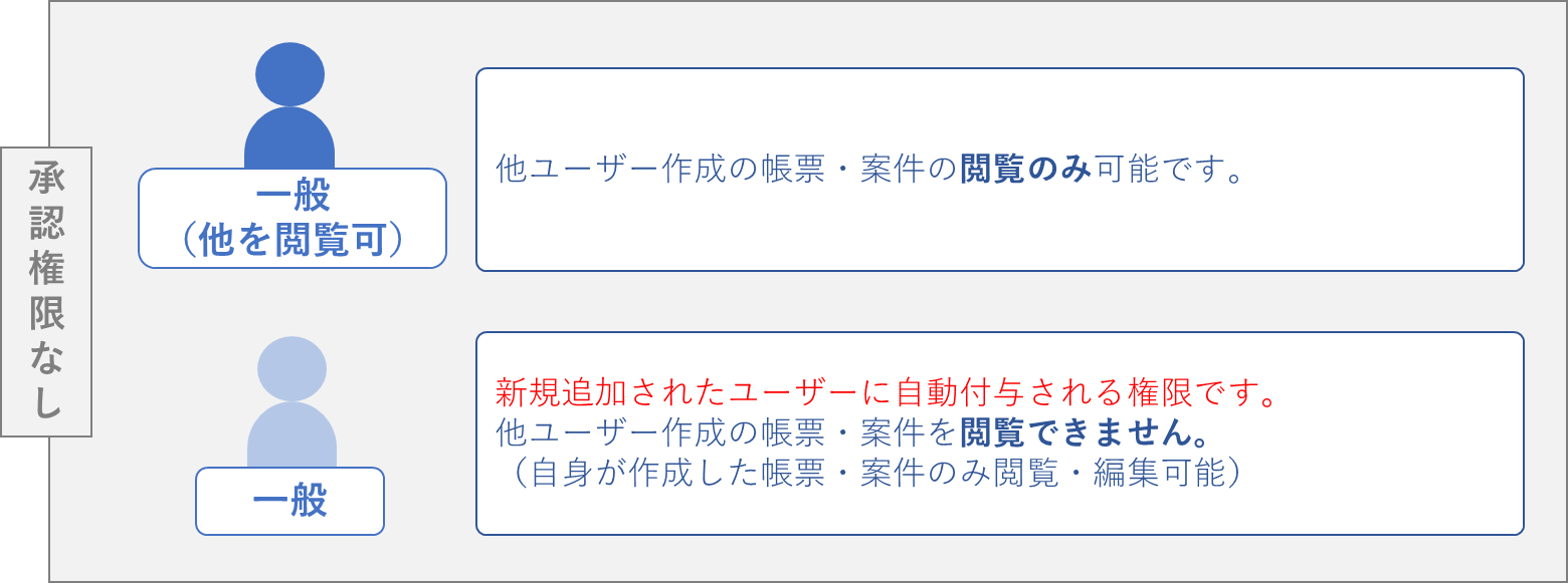 設定した権限によって、利用できる機能や、他ユーザーが作成した帳票に対する扱いが異なります。