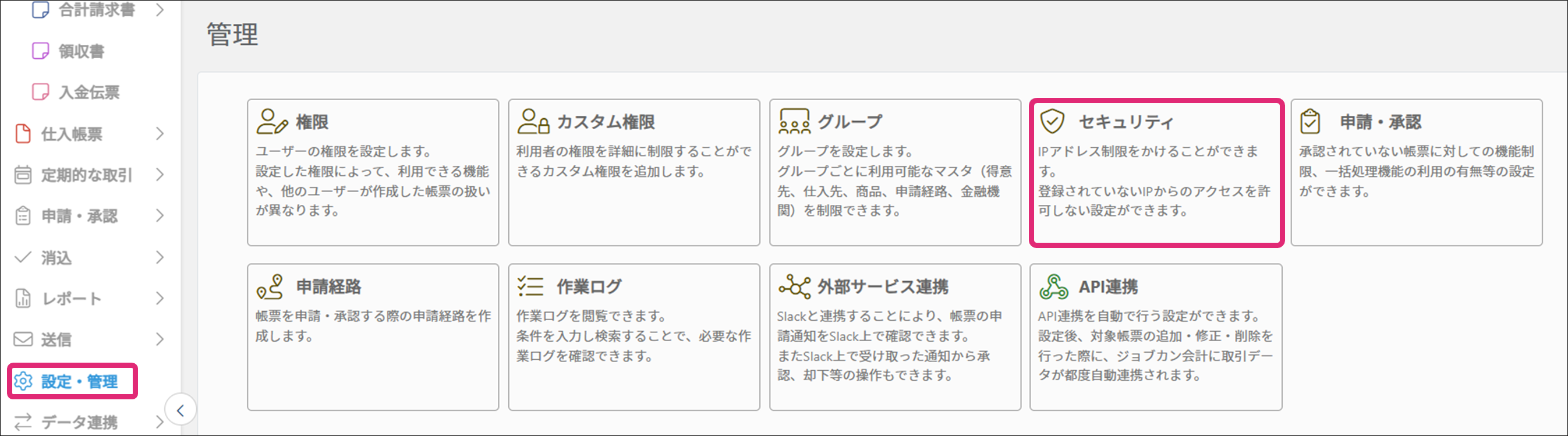 「ジョブカン見積/請求書」ではIPアドレス制限をかけることが可能です。