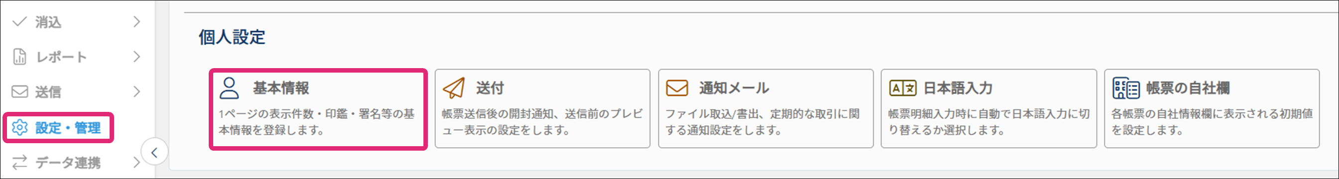 1. メニュー[設定・管理]→[個人設定]→[基本情報]をクリックします。