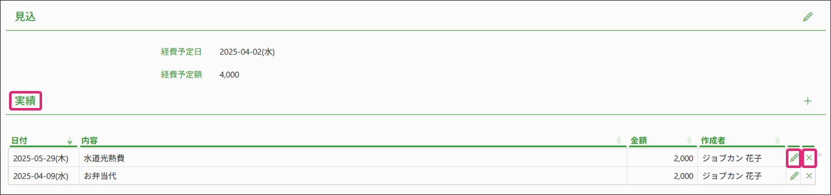 4. [実績]の鉛筆マーク(編集)もしくは✕(削除)をクリックします。