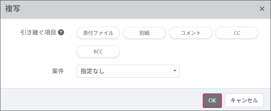 4. 複写ダイアログが表示されます。各項目を設定し、[OK]をクリックします。