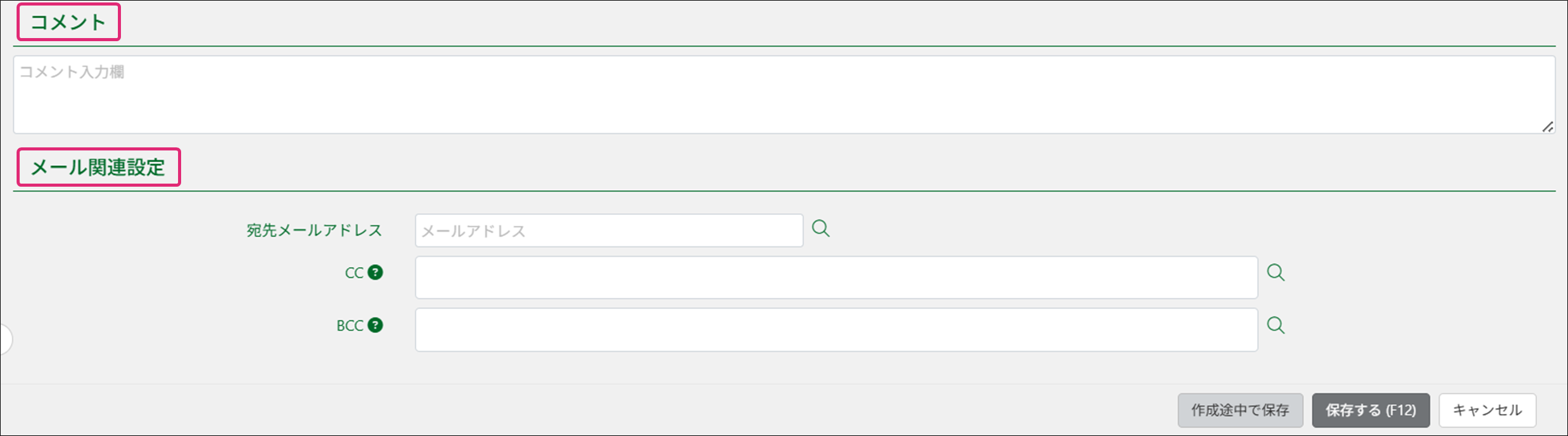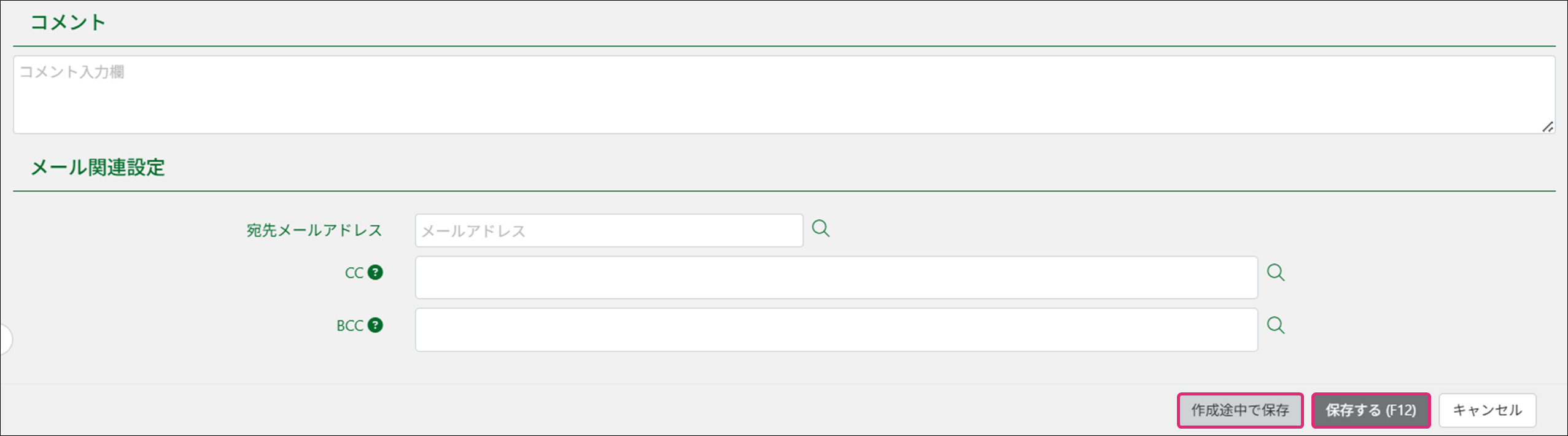 9. [コメント]・[メール関連設定]を入力します。