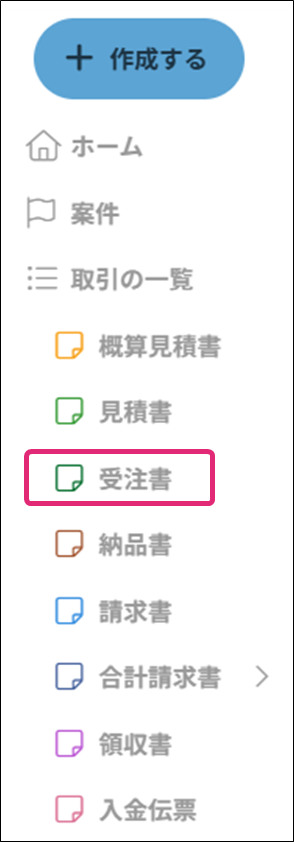 1. メニュー[受注書]をクリックします。