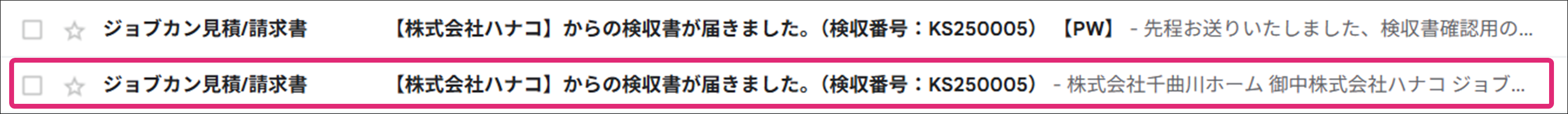 「ジョブカン見積/請求書」から検収書を送信した場合は、送信先として指定したメールアドレス宛てに検収書用のURLが記載されたメールが届きます。