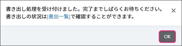 5. 書き出し処理受付ダイアログが表示されます。[OK]をクリックします。