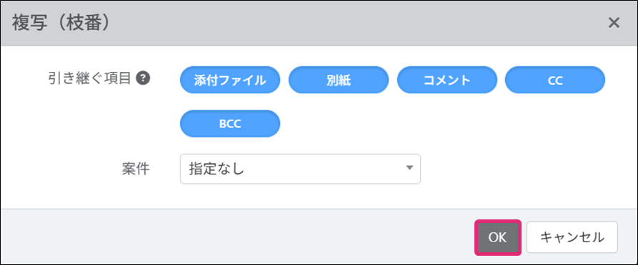 4. 複写(枝番)ダイアログが表示されます。各項目を設定し、[OK]をクリックします。