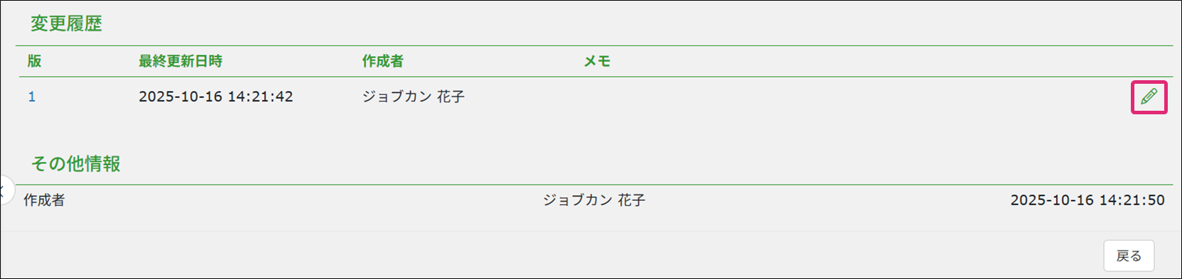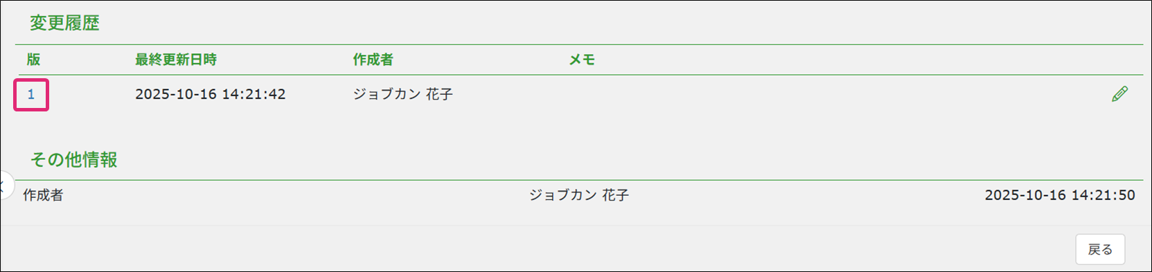 旧バージョンの情報は最新バージョンの履歴に残り、後から確認することができます。