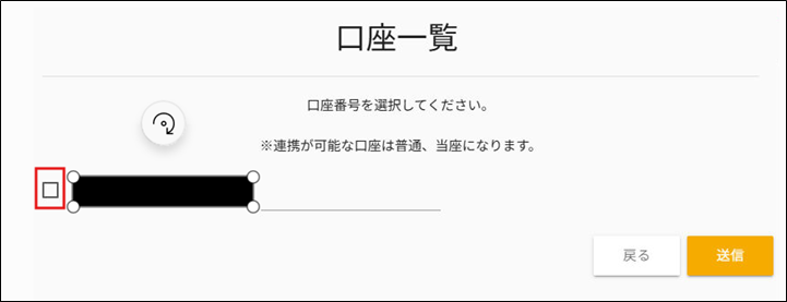 6. AccountTracker画面へ自動遷移します。[口座一覧]画面で連携したい口座を選択し、[送信]をクリックします。
