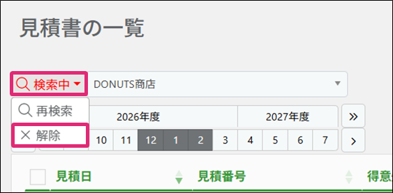※「検索中」表示は維持されますので、解除したい場合は「検索中」→「✕解除」をクリックします。