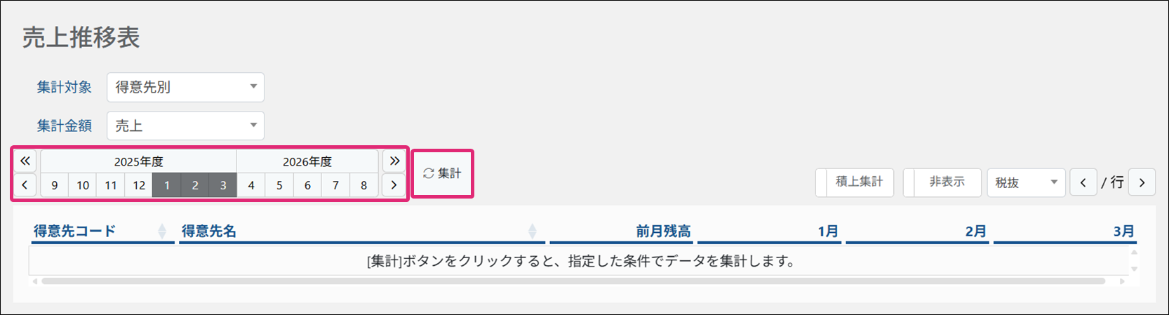 3. 対象期間を選択し、[集計]をクリックします。